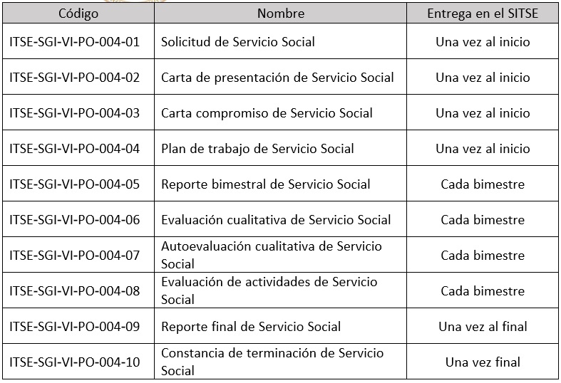 DOCUMENTOS PARA SERVICIO SOCIAL DEL SISTEMA DE GESTIÓN INTEGRAL: