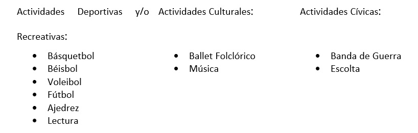 Las actividades que se ofertan las siguientes: